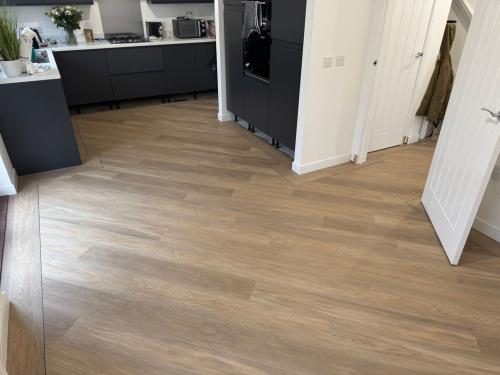 We supplied and fitted Amtico First colour Heron Oak to this new build home, the customer opted to have it laid 4x18 parquet effect with border feature and 4mm Dew stone stripping feature.