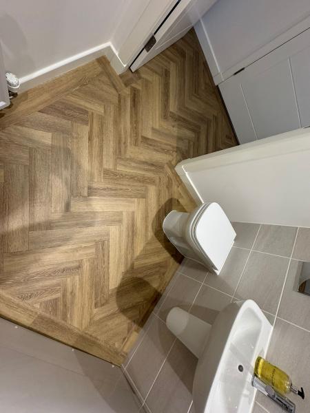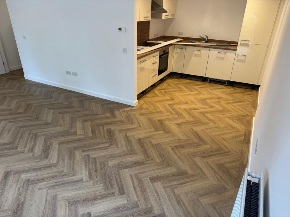 Here are a few snaps of an installation we supplied and fitted to a new build flat last week. We prepared the subfloor with a 6mm plywood. Beautiful. * Amtico Spacia, Mulled Oak, 4x18 Parquet with border feature.