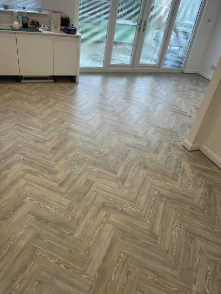 The customer opted for Amtico Spacia White Ash laid 4x18 parquet effect with border feature.