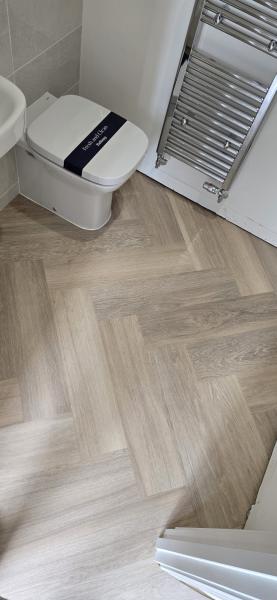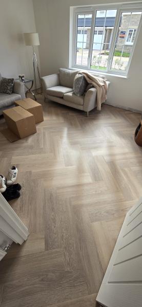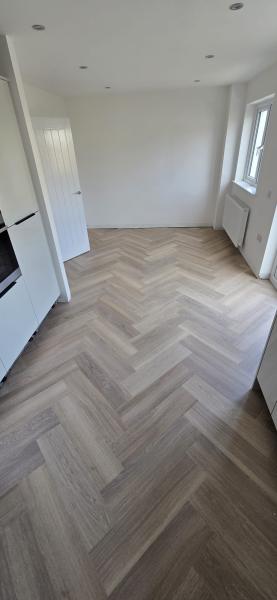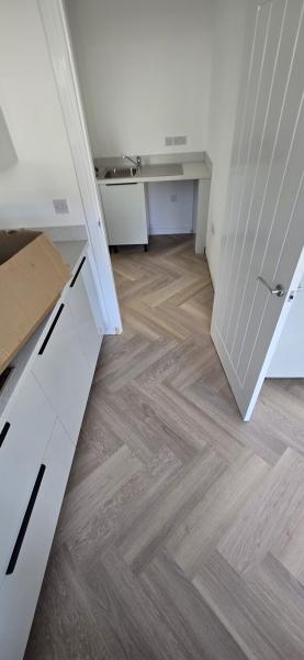 Another beautiful installation supplied and fitted by the McDonald Flooring team to a new build home in Stirling. Our customer opted for Karndean Van Gogh colour Neutral Brushed Oak which was laid 7x28 herringbone effect to the full ground floor areas. We prepared the subfloor with a prime and screed.